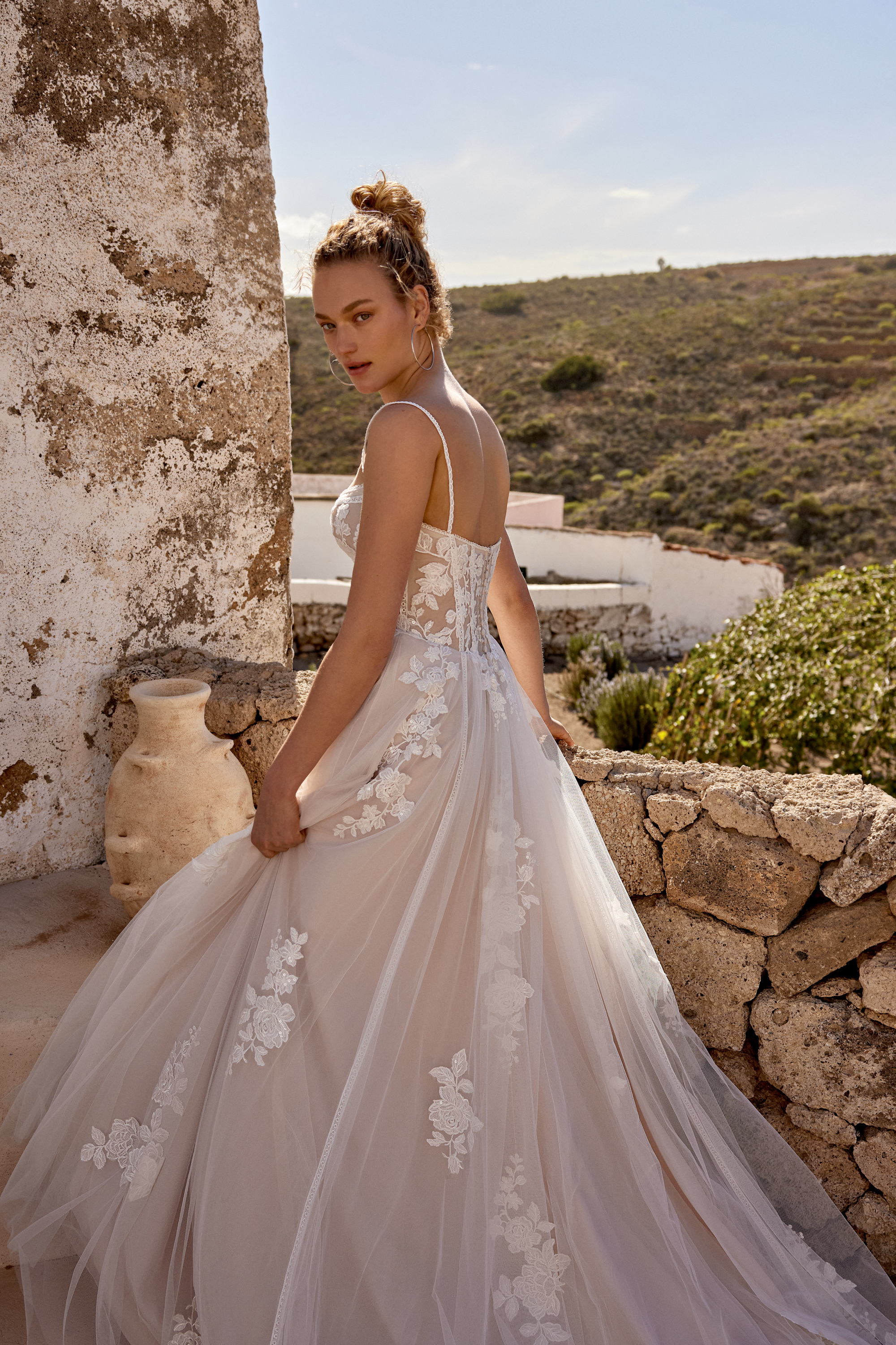 This tulle Aline gown has unique lace details to highlight the shape and flow.
