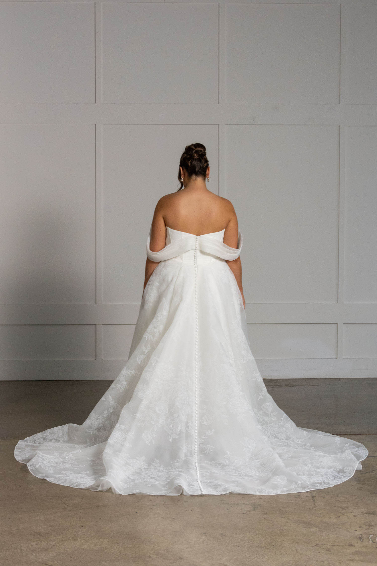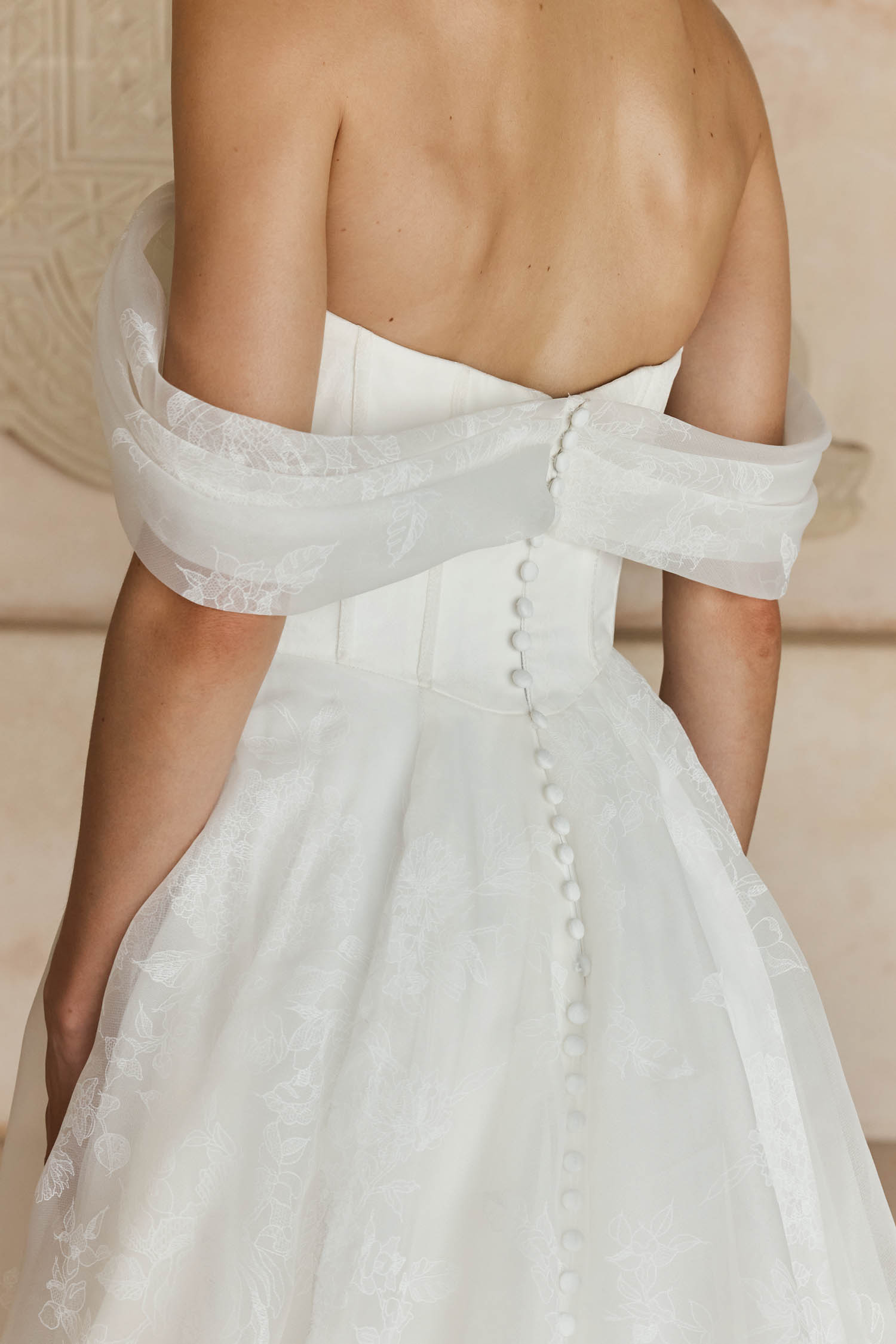 A signature style for Madi Lane, our Lawson wedding ballgown features an exquisite lightweight printed floral organza which gives soft dimension as the dress moves.