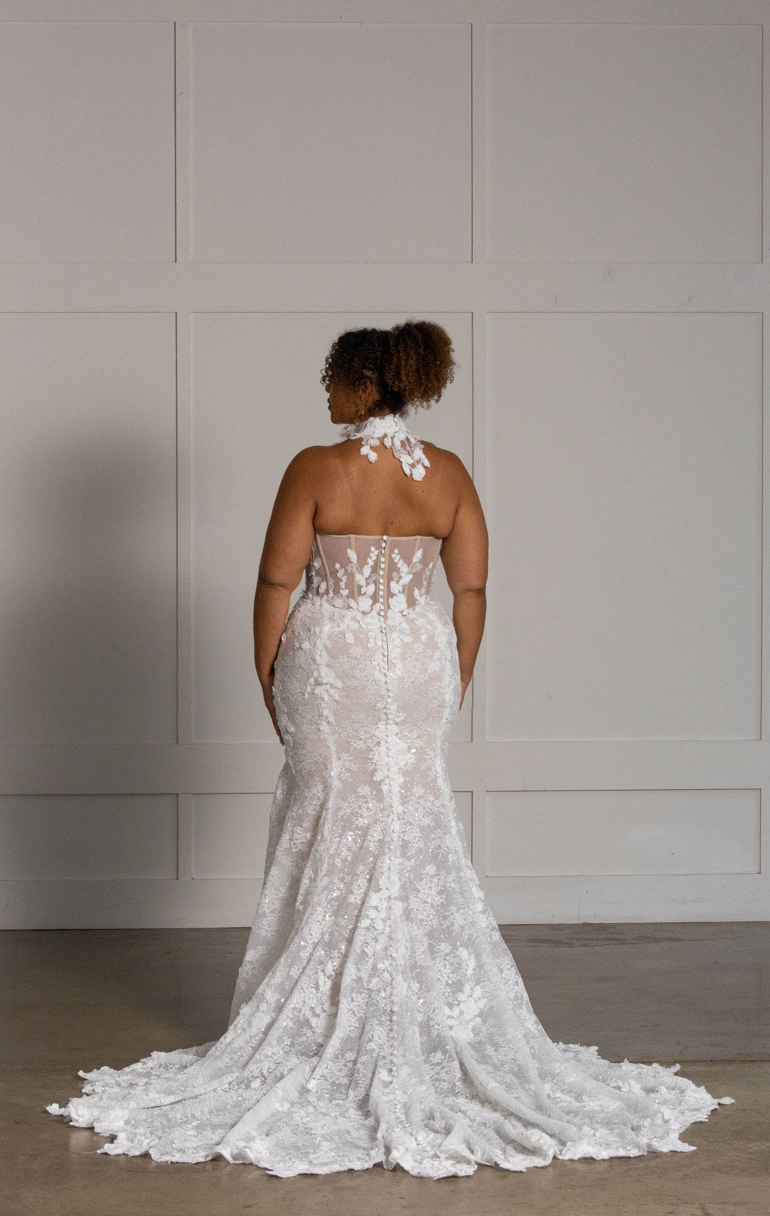 For brides who love the ultimate snatched look, Leith’s impeccable construction, internal support band, and seam lines deliver.