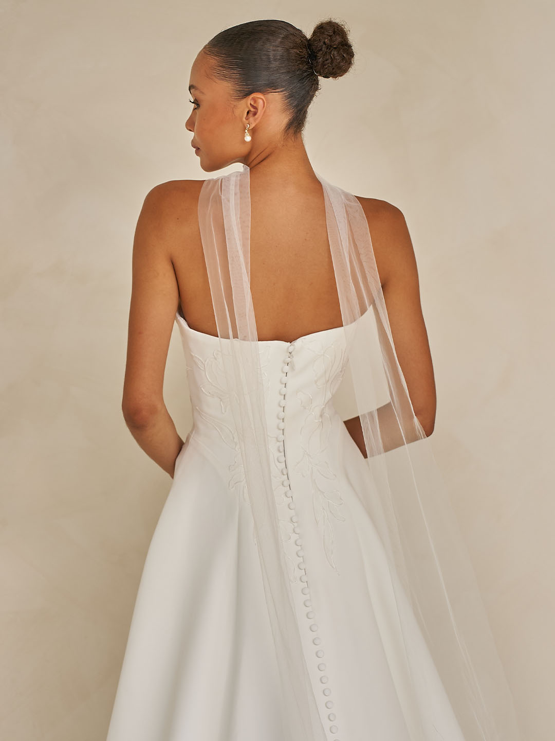 To complete the look, Wendall can be paired with its matching embroidered tulle scarf for a final touch of tradition.