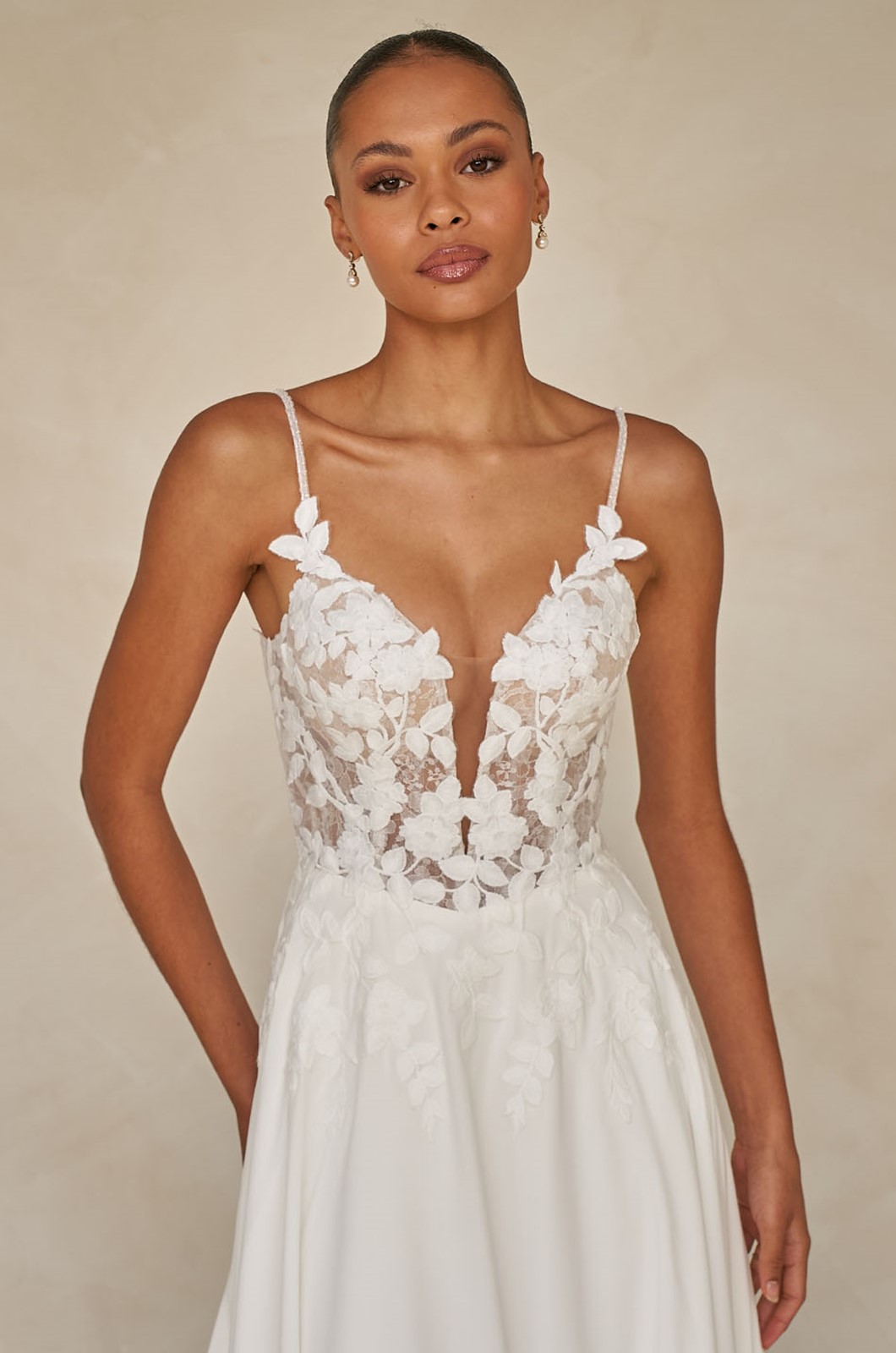 A timeless gown with a modern heart. Whyte is destined to become a favourite for the romantic bride who adores the elegance of chiffon.